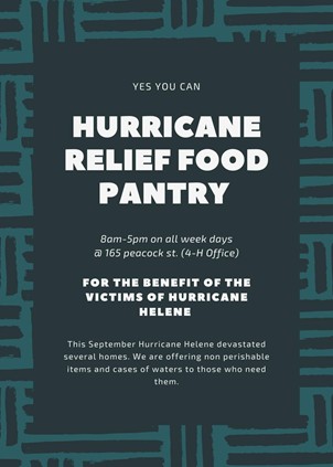 Hurricane Relief Food Pantry open at extension office for those in need.