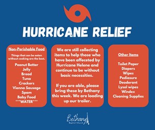 Local church collecting relief supplies for Georgians impacted by Helene.