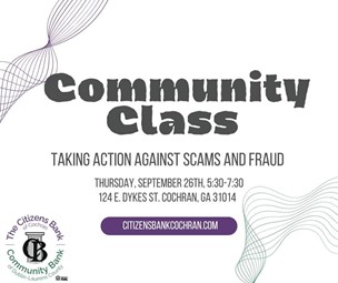Email marketing@citizensbankofcochran.com or call (478)934-6277 for more info or to register.