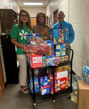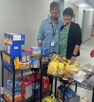 (Photos courtesy Bleckley Memorial Hospital Facebook page.) Bleckley Memorial Hospital recently donated food items to Bleckley County Primary and Bleckley County Elementary schools. Donations were collected by employees. Over 3,000 items were collected and were split between the two schools.