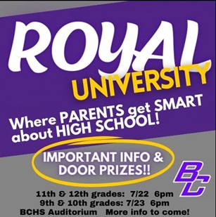 This is an event to help parents and students learn more about high school, Those eligible to purchase parking passes will be able to do so. Ninth and 10th grade is July 22, 11th and 12th is July 23.
