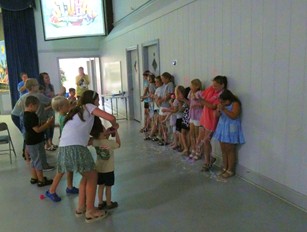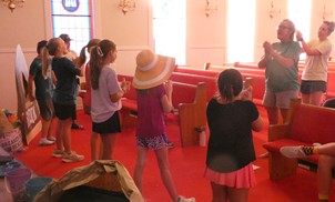 It was Parent’s Night for Vacation Bible School at Empire Pentecostal Holiness Church Wednesday evening. The theme was “Scuba: Diving into Friedhship with God After watching a skit with Scuba Steve and Dalton, kids performed songs they’d learned during the week. It got a bit silly when the results of offering collections were announced. Children had been bringing money to go toward two children in Nepal. Because the boys outgained the girls, the girls got sprayed with silly string. Another offering was collected and a highlight video was shown before Pastor Doug Stoddard spoke briefly and blessed the hot dog dinner enjoyed.