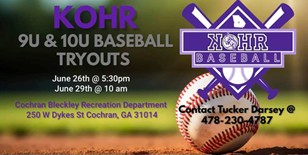 KOHR Baseball holding tryouts for 9u,10u, teams.