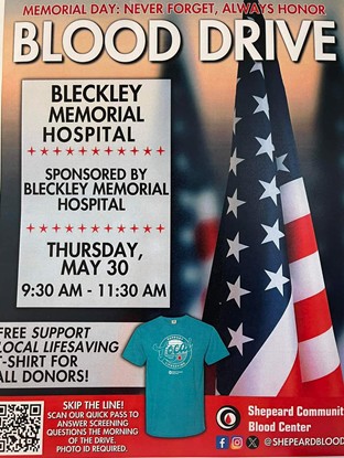 Blood drive at Bleckley Memorial Hospital May 30.