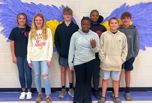 Eighth grade: Maurteriah Farrow, Vureya Elvine, Eli Hodges, Eli Arnold, Kensley Duffey, Sam Stokes, Arshanti Beck, and Anna Lynch.