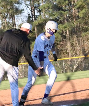 Shane Knighton is congratulated by head coach Brad Davis after homering in the fourth inning of Tuesday night's game.