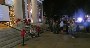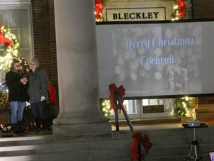 The sound of Christmas carols being played and sang could be heard around the courthouse Thursday night at the first ever “Carols at the Courthouse.” It was organized by BCHS Junior Ellen Arnold. She said she was inspired to do something to make Christmas brighter in the community after reading the Christmas story in the Bible. The event featured traditional hymns being played along with passages being read from the Christmas story. Joy Ellen Arnold and Andrea Vincent performed the Spanish version of “Silent Night.” There was free hot chocolate and a place to donate canned goods or cash for local people in need.