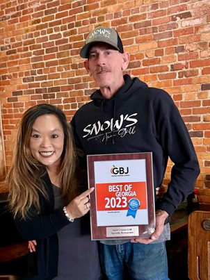 Snow's Asian Grill was chosen by the Georgia Business Journal "Best of Georgia" in Specialty Restaurants. Snow's was nominated by the GBJ then voted on by readers. Mi and Rick Waters own and operate Snow's.