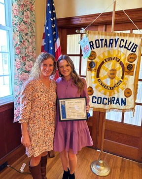 (Photo courtesy Bleckley County High School Facebook page.) Gracyen Phinazee was recognized as this month' s Rotary Club of Cochran monthly meeting as their Student of the Month. She chose Heather Davis as her teacher to honor.