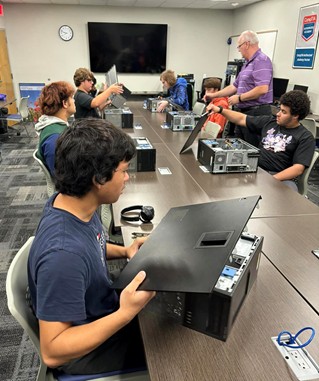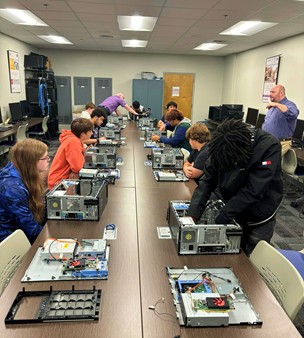 (Photos courtesy Bleckley County High School CTAE Facebook page.) BCHS students participated in a math/IT day hosted by the Cochran campus of Middle Georgia State University. Students were tasked with tasked with assembling computers, learning about cyber security hacking and defense in simulated scenarios, and mathematical concepts and application.