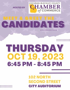 Chamber of Commerce offering an opportunity to meet candidates for office.