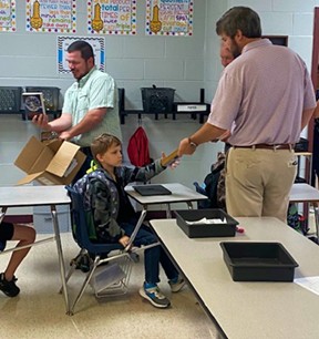 (Photos courtesy Bleckley Elementary Facebook page.) Cochran Rotary Club helped third graders at Bleckley Elementary get off to a good start with learning by giving them dictionaries.