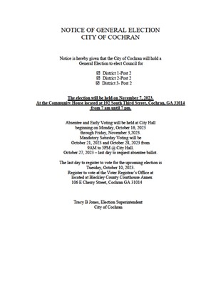 Notice of general election in Cochran.