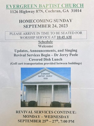 Local church to hold Homecoming, Revival, services.