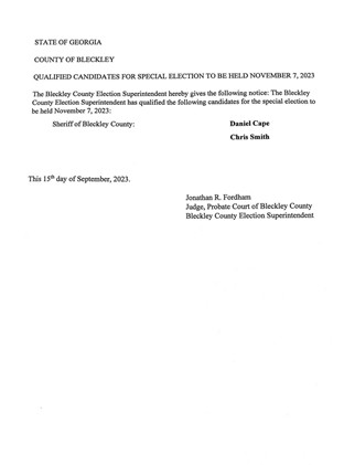Candidates who've qualified for special election for county sheriff.