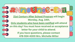 21st Century After School Program starting August 14.