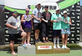 (Photos contributed.) Members of the Bleckley Pickleball Association were in Macon this past weekend for the “Time For Lunch” tournament. BC played in Gender Doubles Saturday and Mixed Doubles on Sunday. Results were as follows.