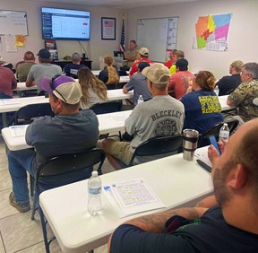 (Photos courtesy Bleckley County Fire Department Facebook page.) Georgia Forestry Commission Chief Ranger Jim Cravy spoke to members of the Bleckley County Fire Department last week. He spoke about how they approach a fire as well as factors involved in issuing burn permits for non-homeowners. Factors include weather and smoke that could affect a major road.