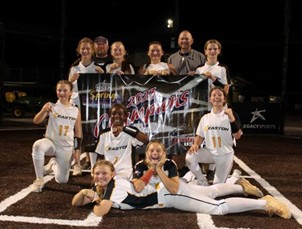 (Photo contributed.) Easton Futures Gold finished first at the USFA Spring Championship played at Southern Pines. The team is pictured with coaches Stephen Brown and Chris Adams.