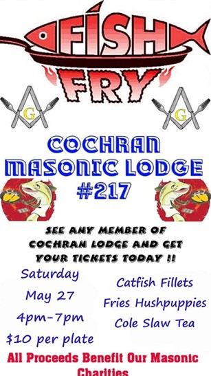 Cochran Masonic Lodge Fish Fry May 27.