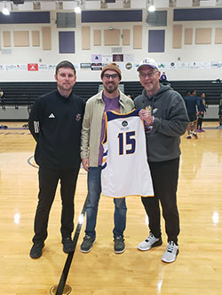 Mt, Calvary Baptist Church was Friday night's game sponsor. Pictured with boys head coach Garrett Collins is Mt. Calvary youth pastor Daniel Demarra and pastor Dr. Lane Collins.