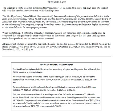 Our ad rates are $35 a month.There is no long term commitment, but you are responsible for the current month if you cancel after the billing cycle. Call 478-230-6556 or email BleckleyProgress@aol.com for details. Web statistics available upon request.