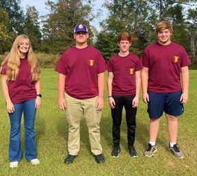 (Photos courtesy Bleckley FFA Facebook page.) The Bleckley FFA Junior Ag Mechanics Team won area competition held this week at Camp John Hope in Fort Valley. Team members are Logan Davis (first place individual), Alex Jones (second), Gavin Watkins (third), and Jacob Foskey (fourth.) Reese Bryant, Ethan Parks, Ford Childers and Cole Garnto competed in the Farm Agribusiness Career Development Event. Hayden Barlow competed in the FFA Quiz CDE.