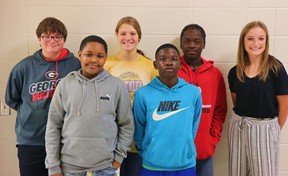 Eighth grade. Front row- LaDainian Tillman, Jireh Campbell. Back row- Kaleb Leverett, Emily Maddox, Terrolieo Brimidge, Anna Grace Dykes. Not pictured- Shay Ates and Aubree Gay.