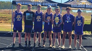 (Photos contributed.) BCHS Cross Country swept the 3-AA championship meet held Tuesday morning at Washington County. The girls had a perfect score in winning their 19th straight title. Tristian Crosby was top individual. The boys had the top three runners in winning their 16th consecutive title. Luke Churchwell was top individual. The Runnin' Royals wrap up their season at state November 5 at 9 am in Carrolton.