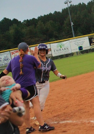 Darci Dillard gets a high-five from head coach Teresa Gray after hitting a go ahead grand slam in the fifth inning.