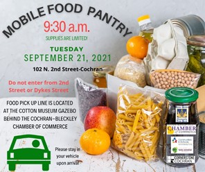 There will be two trucks of food to make up for no pantry in August. Volunteers are needed, call (478)934-4300 or email pmoore@bleckleyschools.org to volunteer.