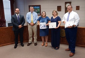 Bleckley Primary and Bleckley County High School were recognized as Title 1 Distinguished Schools. Pictured L-R: are Superintendent Dr. Steve Smith, Bleckley Primary Principal Dr. Quent Floyd, BCPS Assistant Principal Gina Pearson, BCPS Assistant Principal Emily Bryant and BCHS Assistant Principal Dr. Brad Knox.