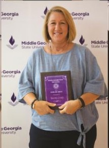 (Photo courtesy news release.) Longtime library assistant Tammy Coody received the “Staff Unsung Hero” award during an awards presentation that took place at Middle Georgia State University’s convocation to kick off a new academic year. Coody is a library assistant II at Roberts Library on the Cochran campus. According to a release, the award goes to a staff member who “works behind the scenes, and yet continues to go above and beyond the call of duty to improve the MGA experience for students, coworkers, faculty, and staff.” Coody was said to be key in helping prepare Roberts Library for its recent renovations.