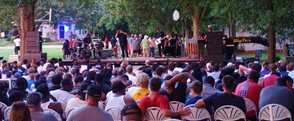 This week, the Royals have been hosting their annual summer camp with teams from across Georgia including Trion and Effingham County led by former BCHS assistants Sean Patrick and John Ford. Wednesday night, a fellowship event was held at First Baptist Church sponsored by BCHS Fellowship of Christian Athletes. After getting off the bus, players were guided to lines were volunteers were on hand to distribute sandwiches and water. The evening featured music and worship from the JJ Weeks Band as well as a brief message from FBC Pastor Keith Rustin.