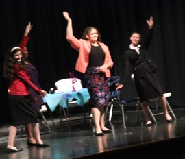 It was a trip back to the 70’s as Bleckley County Middle School theatre classes presented “Disco Knights.” There were several stories in the play. Rita, owner of local hangout Rita’s Roller Rink who planned to do some upgrading to her facility. The gang of students from Culpepper High who hung out there. Principal Mrs. Flint who wanted to be principal of the year and her assistant who sought to foil it by using some bad boys named Peter and Bobby (yes, they reference who you think they do.) Plus there are jewel thieves who hide a diamond inside Rita’s disco ball that’s going to be used for the disco dance party. The colorful characters and covers of 70’’s music made for a groovy time.