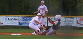 Matthew Bland tags out a runner trying to steal second.