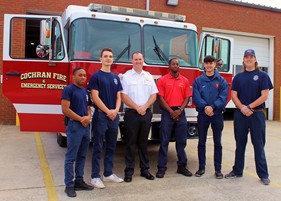 L-R: Daryl Poole, Noah Kincaid, Cochran Fire Chief Brock Wilcher, Elijah Coles, Andris Perri, Austin Woods.