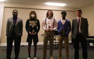 Pictured with Academic Award winners Arelius English, Ethan Hulsey, and Marcus Newsome are assistant coach Benny Owens and head coach Garrett Collins. Collins noted they had more players this season with a 90 or better average during the presentation.