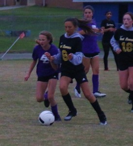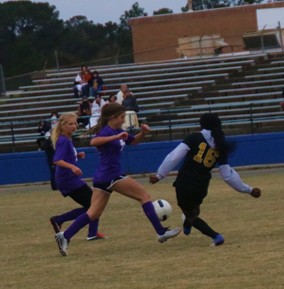 Third seeded BCMS took on second seed East Laurens in an MGMSAA soccer semifinal Monday afternoon at West Laurens. It was scoreless until the 35th minute when several Lady Falcon players crowded around the net. One of them was able to force the ball in for the game's loan goal as Bleckley lost 1-0.