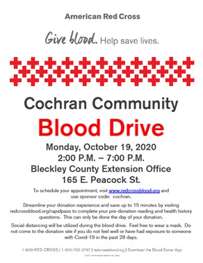 Red Cross Blood Drive October 19.