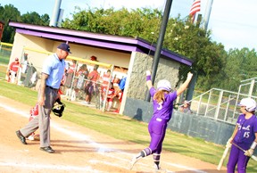 Darci Dillard is excited as she comes home after hitting a solo home run in the second inning.