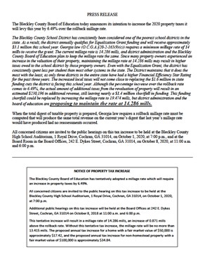 Board of Education publishes tax digest, announces intention to increase taxes over rollback millage rate.
