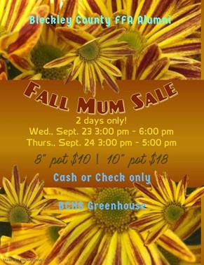 Bleckley FFA Alumni holding fall mum sale September 23-24.