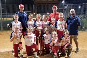 (Photos contributed.) A pair of local-based travel teams brought home first place trophies from their tournaments Saturday. Georgia Select 10u (formerly known as Surge Fastpitch) finished first in a CAMSPORTS-USA tournament played in Gray. Pictured is the team with coaches Chris Adams, Matt Gill, and Trent Boulineau.