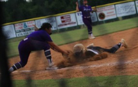 Clara Rickerson just missed tagging out this runner at third base.