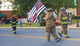 For the second year in a row, Bleckley County paid tribute to those who lost their lives on 9/11. Cochran firefighters, along with members of the Bleckley County Fire Department as well as fire departments from other counties, walked one mile from the Cochran Fire Station to Eastgate Plaza on Dykes Street. The group was escorted by a police SUV as well as fire trucks and an ambulance. The mile walk was in remembrance of Stephen Siller who walked one mile to respond to the Twin Towers attack.