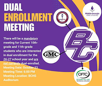 Mandatory Duel Enrollment interest meeting for 10th and 11th grade students October 23.