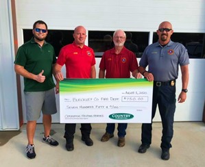 (Courtesy Bleckley County Fire Department Facebook page.) The Bleckley County Fire Department recently received a donation from Country Financial. Pictured L-R: are Brandon Pipkin from Country Financial, Michael Francis, Lynn Hancock, and BCFD Chief Matthew Kelly.