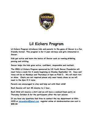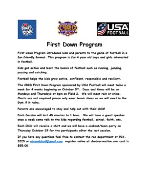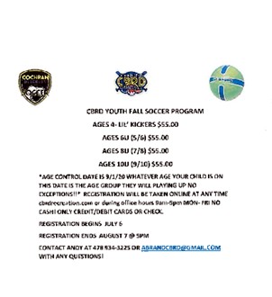 Rec. Department holding football, soccer registration, debuting programs in both for four-year old's.