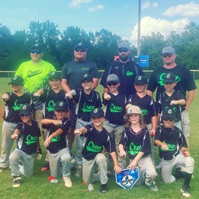 (Photo courtesy BleckleyProgress.com contributor.) Local-based Crew baseball finished second in an Out of the Park tournament played this weekend at the Monroe County Rec. Department. The team is pictured with coaches Danny Rycroft, Scooter Alley, Matt Baker, and Greg Gay.